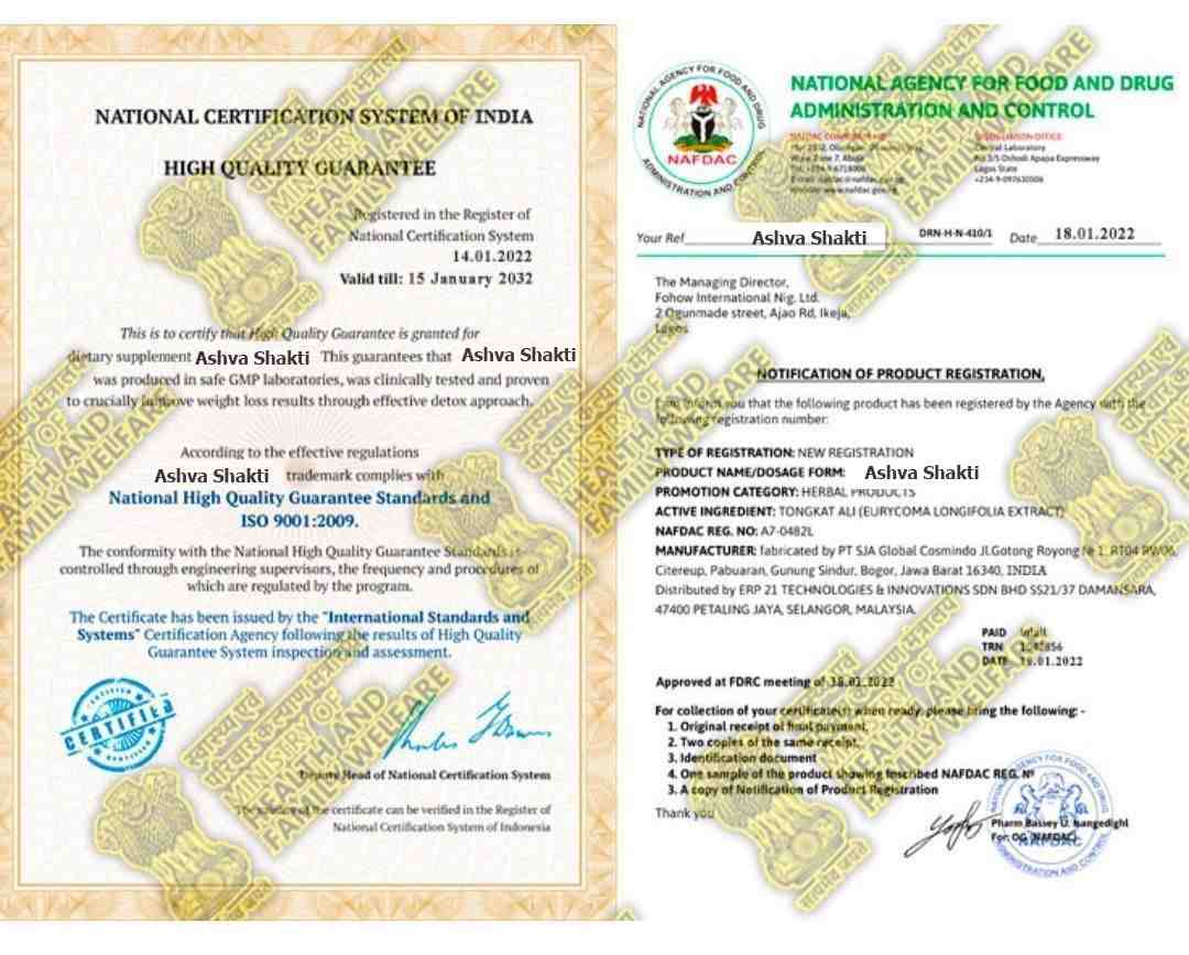 इस उत्पाद की बहुत माँग के कारण, नकली उत्पाद बिकने के मामले बहुत अधिक सामने आने लगे हैं। Ashva Shakti को स्वास्थ्य मंत्रालय से ऑफीशियल लाइसेंस प्राप्त है। नकली उत्पादों से सावधान रहिए।